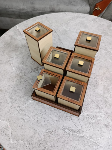 جعبه آجیل خوری چوبی به همراه جا دستمال کاغذی کد 1 (پس کرایه)
