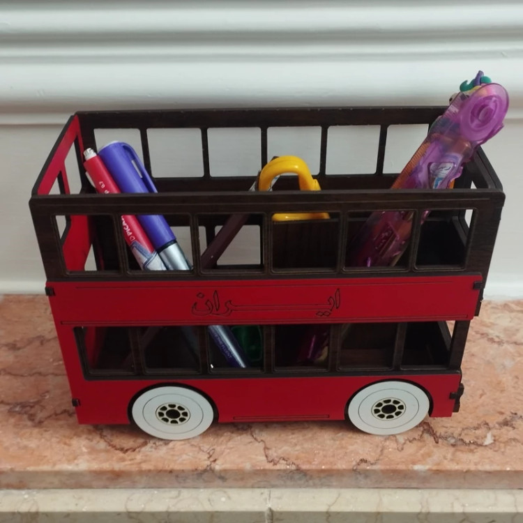 جامدادی رومیزی چوبی طرح اتوبوس دو طبقه (پس کرایه)