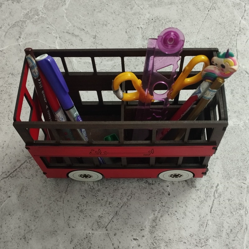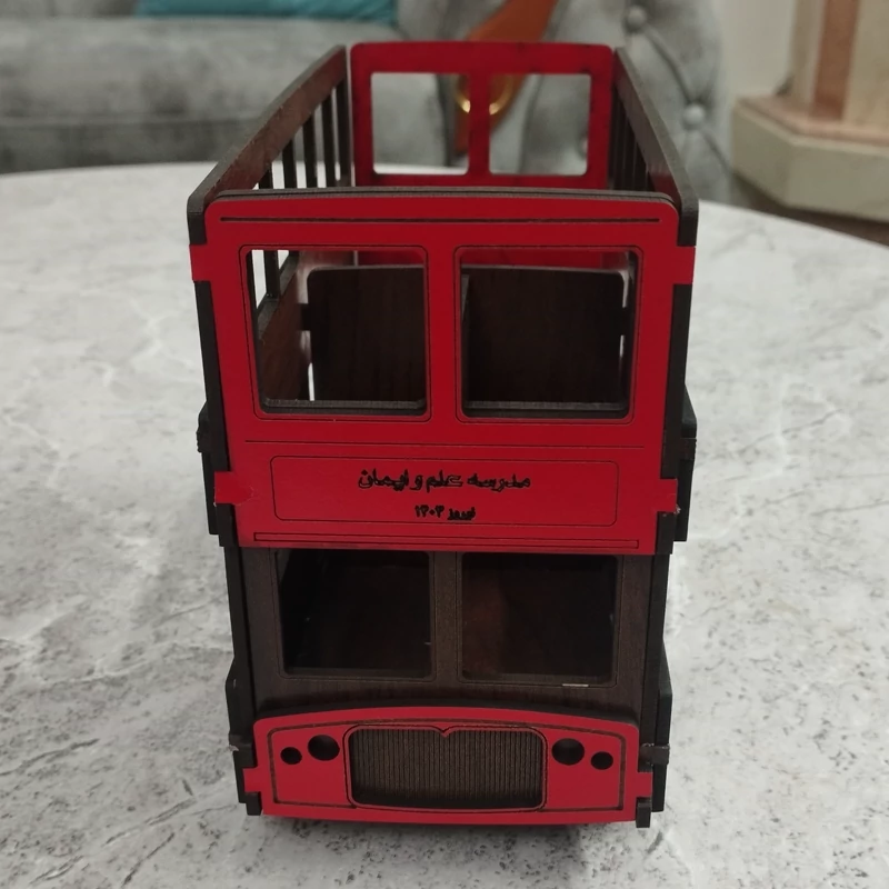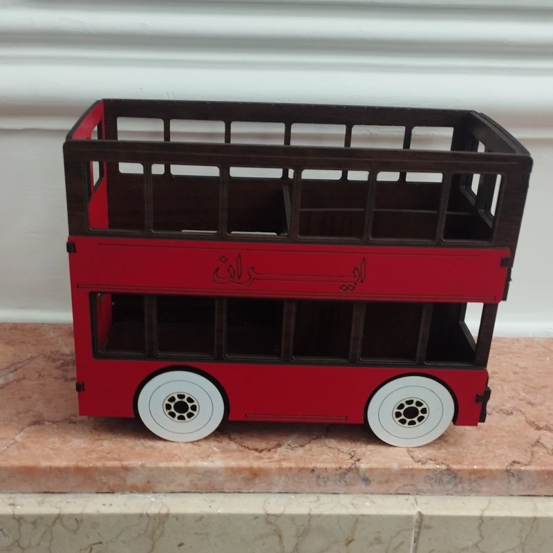 جامدادی رومیزی چوبی طرح اتوبوس دو طبقه (پس کرایه)