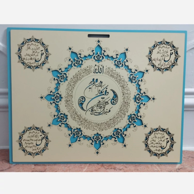 تابلو چوبی چهار قل و آیت الکرسی و ان یکاد (پس کرایه)