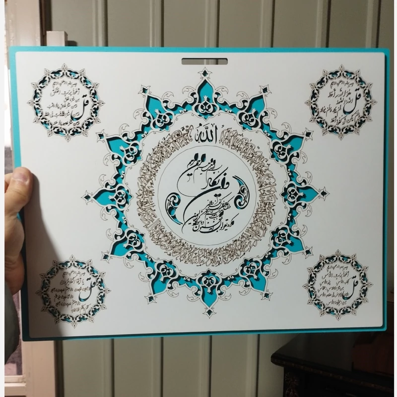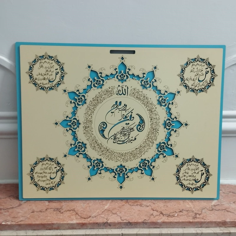 تابلو چوبی چهار قل و آیت الکرسی و ان یکاد (پس کرایه)