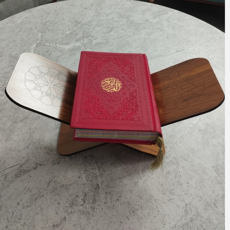 اندازه هر قطعه 12 در 30 سانتیمتر امکان استفاده ی دو طرفه برای قرآن های بزرگ وکوچک امکان تغییر اندازه امکان تغییر رنگ امکان تغییر طرح روی رحل